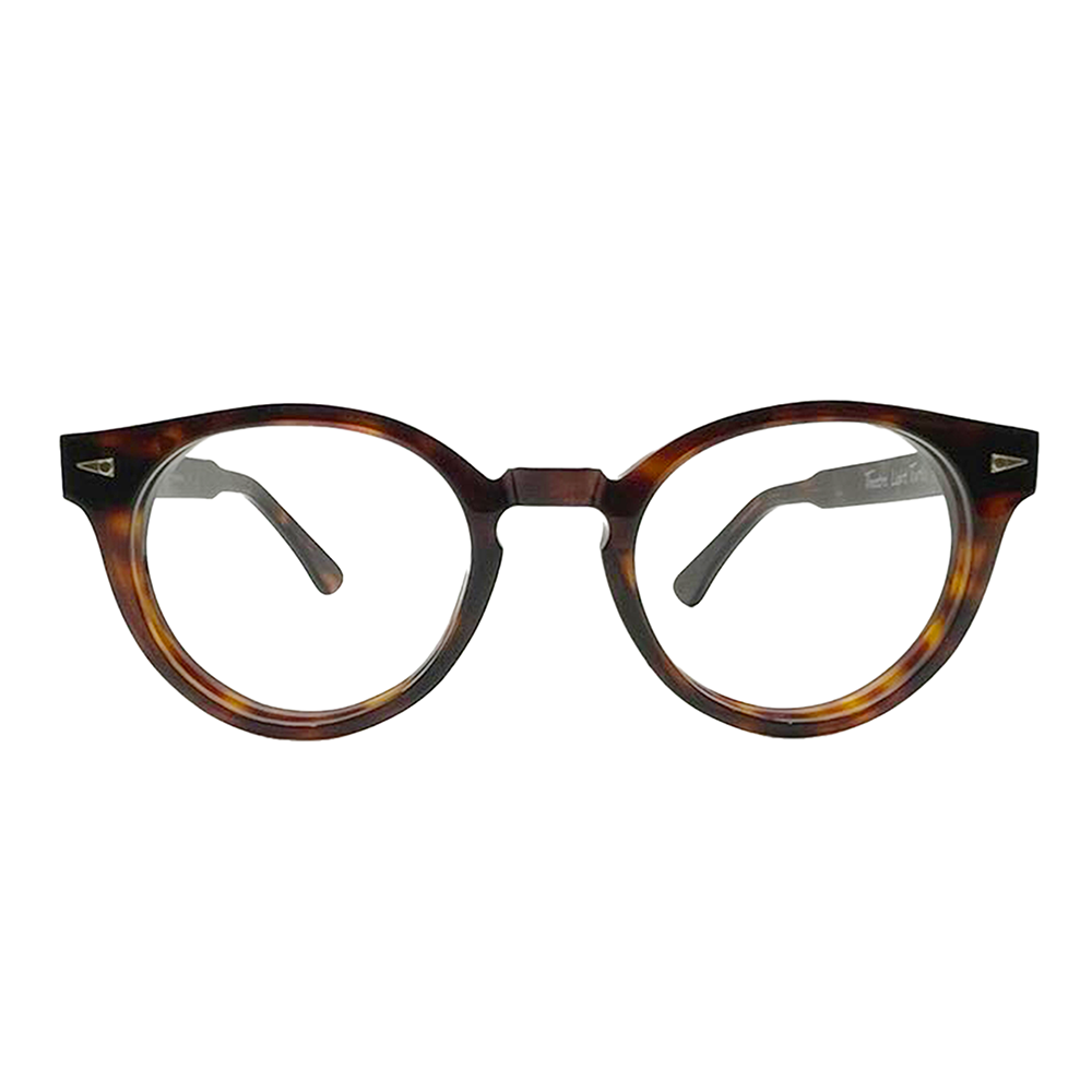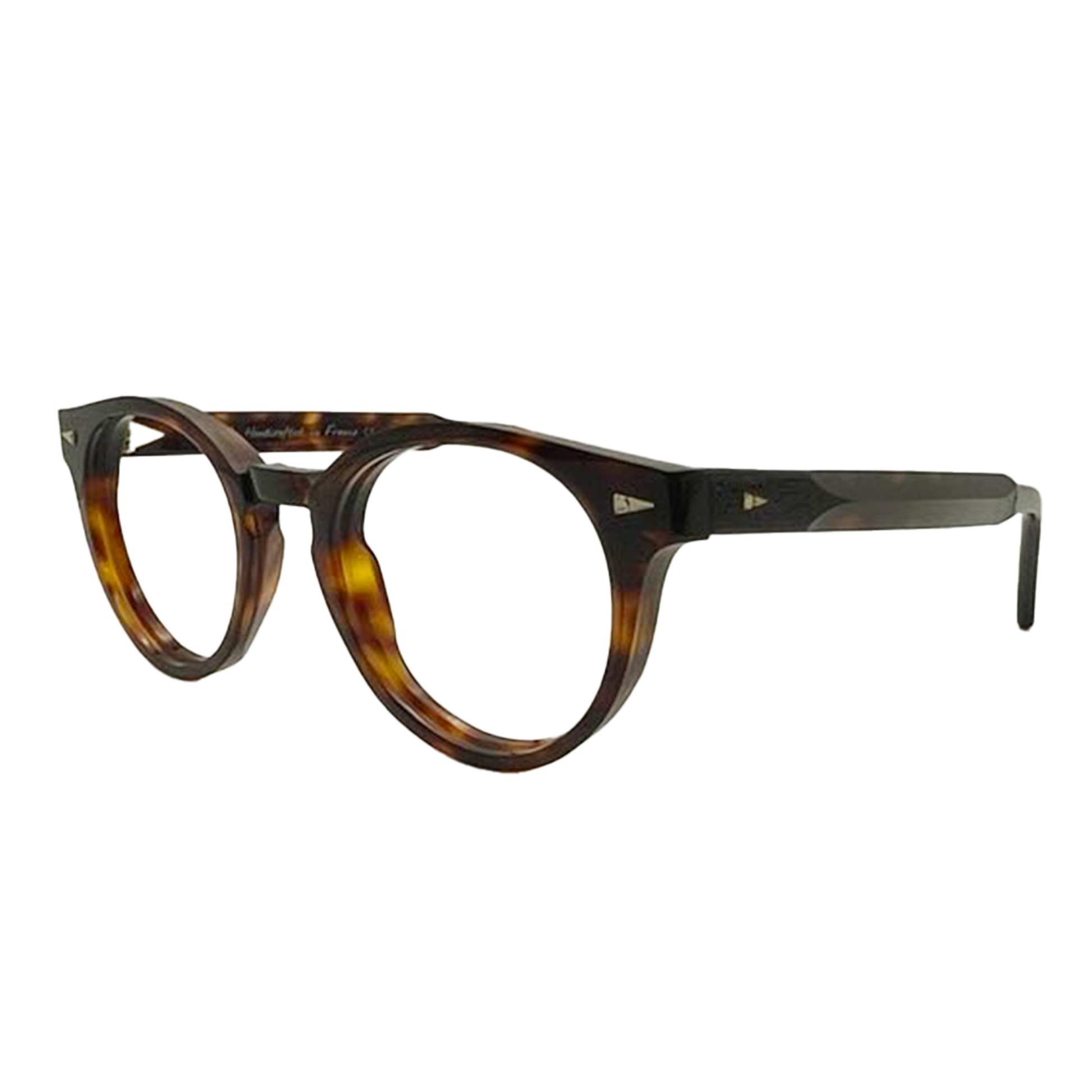 Theatre is a vintage inspired round frame updated with angular flourishes, beveled temples and a recessed keyhole bridge. Handcrafted in France from vibrant tortoiseshell acetate, it is best suited for small to medium faces. A versatile classic.
